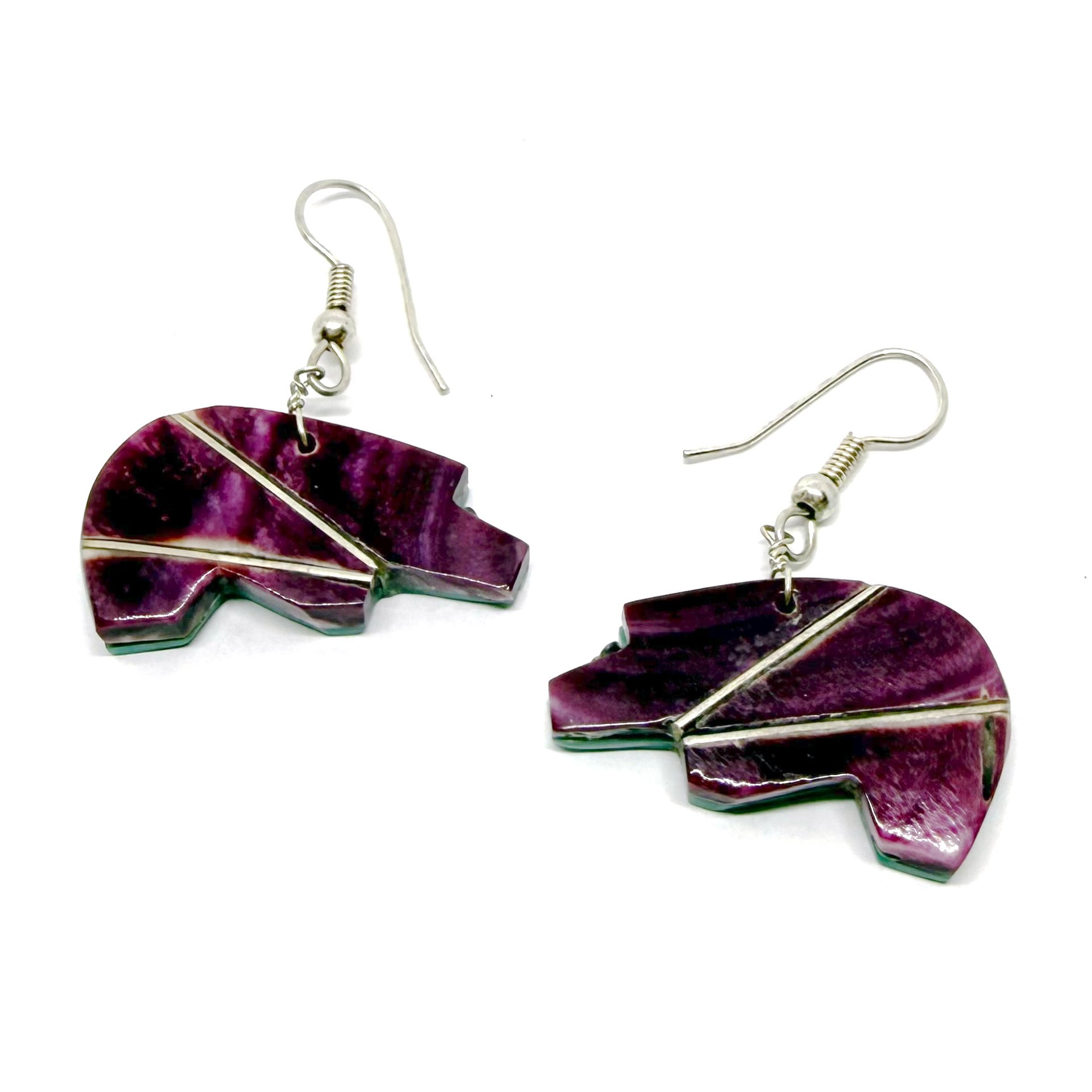 Santo Domingo Bear Earrings (Double-Sided Purple Shell)